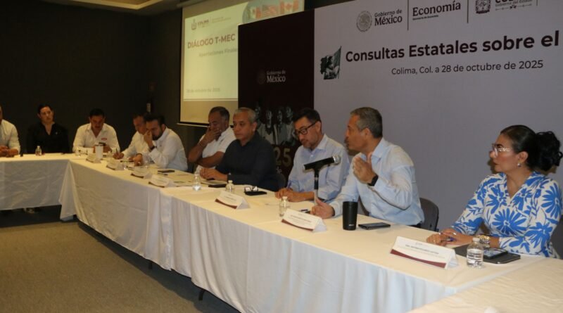 De acuerdo con la Secretaría de Economía, entre el 6 y 10 de octubre se realizaron mesas de trabajo con sectores productivos y gobiernos estatales como parte del proceso nacional de consulta del T-MEC. En Colima, el Gobierno estatal convocó al Foro Regional de Consulta con la participación de cámaras empresariales, academia y sociedad civil.
