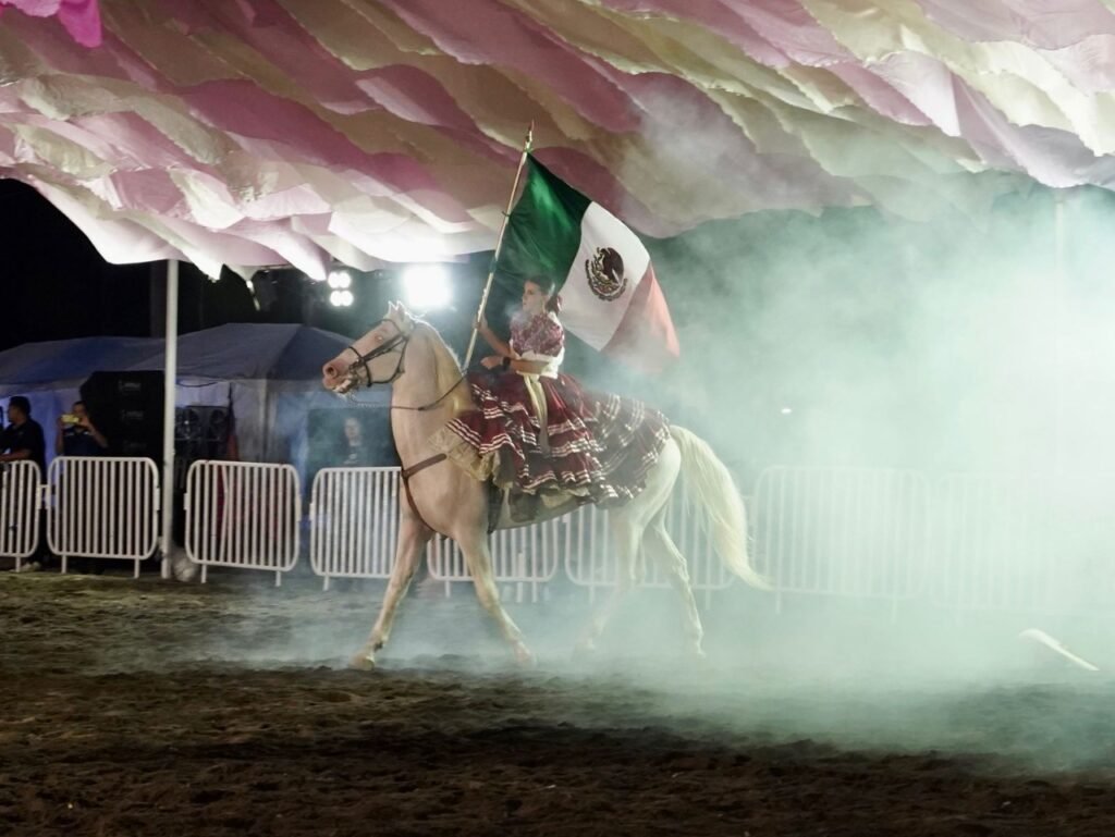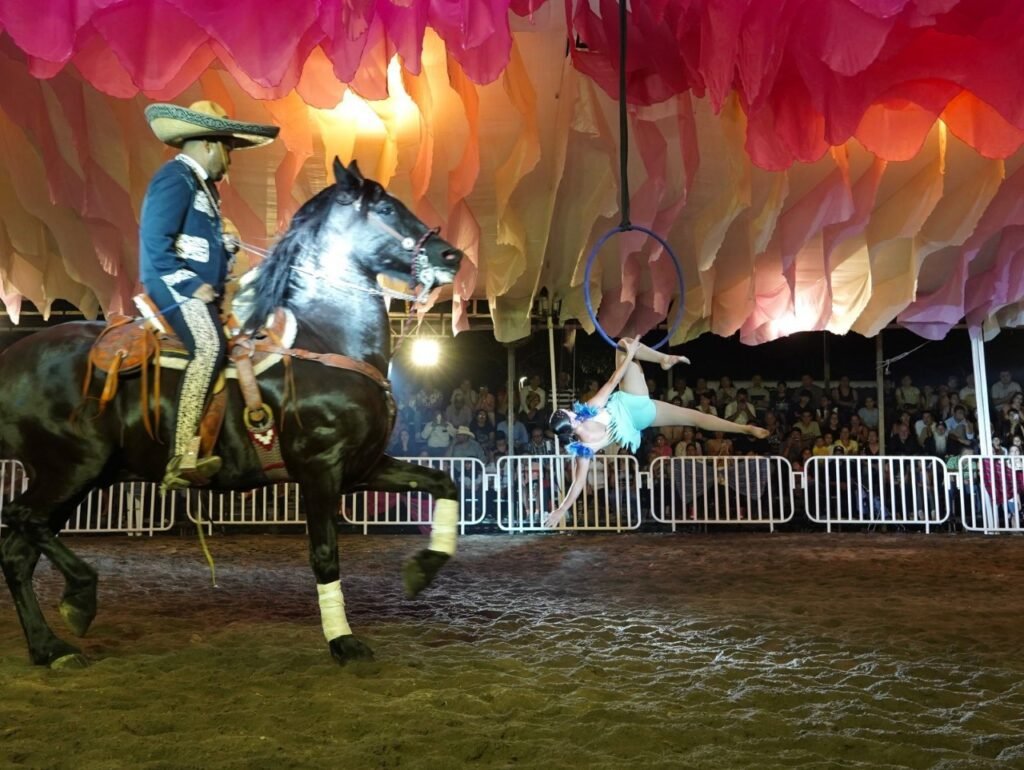 Durante la presentación, jinetes y bailarines mostraron un impecable dominio escénico, fusionando la destreza ecuestre con coreografías inspiradas en las raíces culturales de la República Mexicana, en una producción llena de color, música y pasión.