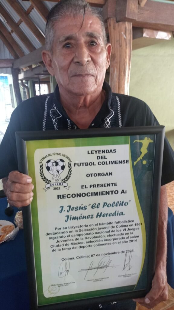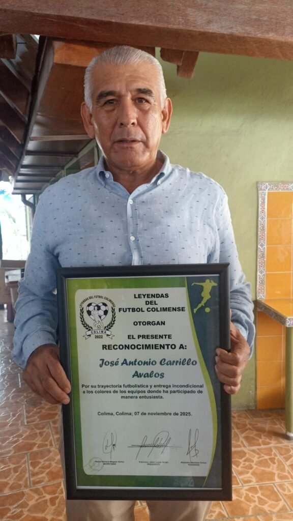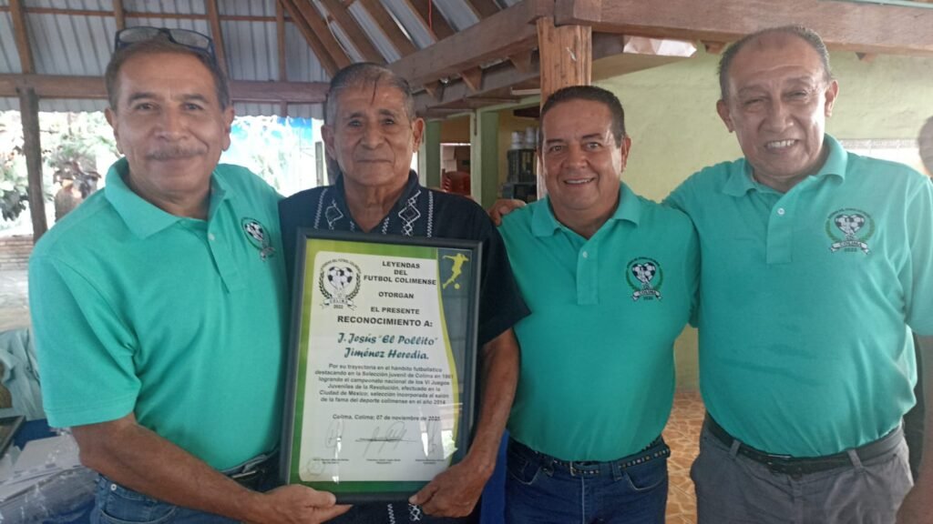 En su reunión mensual correspondiente a noviembre, celebrada este viernes 7, el Grupo de Amigos Leyendas del Futbol Colimense, entregó sendos reconocimientos a los destacados jugadores Jesús “Pollito” Jiménez y Antonio Carrillo Avalos.