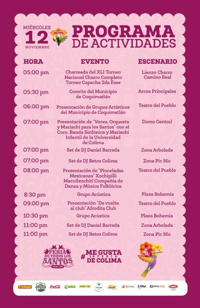 La Feria de Todos los Santos 2025 sigue ofreciendo a las familias colimenses y visitantes de la región, gran variedad de actividades culturales, artísticas y de entretenimiento, fortaleciendo lazos de convivencia y orgullo por nuestras tradiciones, destacó Rodolfo Aguilar Dávalos, director general del Instituto de Fomento de Ferias y Exposiciones (Iffecol) del Gobierno del Estado de Colima.