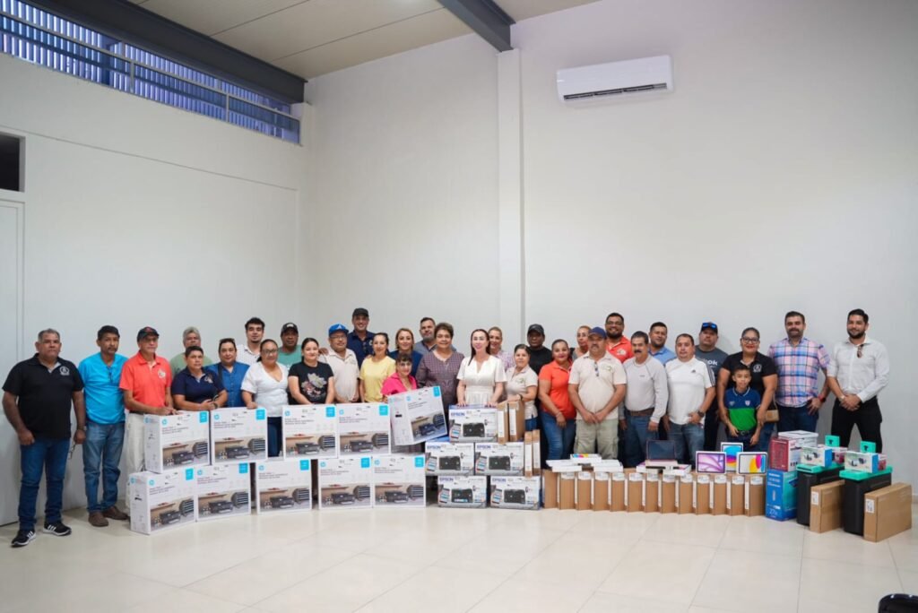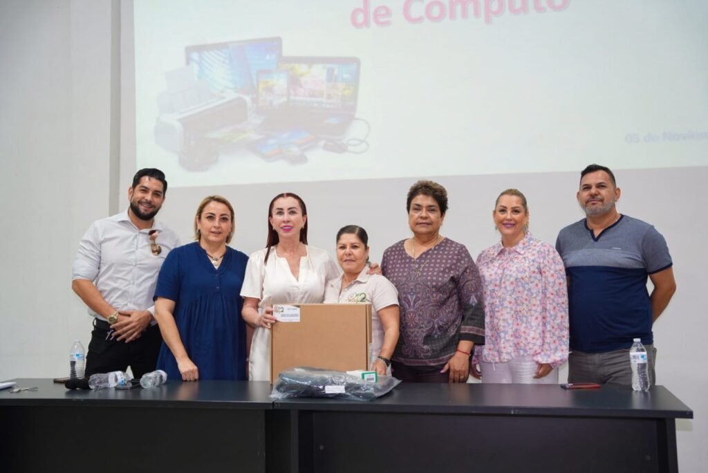 La Presidenta Tey Gutiérrez Andrade y la Secretaria General del Sindicato de Trabajadores al Servicio del Ayuntamiento de Villa de Álvarez, Teresa Ramírez Guzmán, entregaron equipo informático para el desarrollo académico de 34 trabajadores y trabajadoras y sus familias.