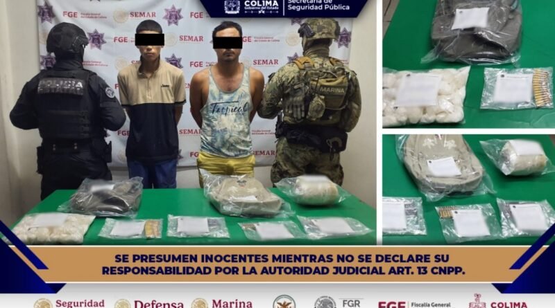 La Secretaría de Seguridad Pública (SSP) del Gobierno del Estado de Colima informa que, derivado del Operativo ‘Pez Vela’, implementado como parte de la Estrategia Permanente de Seguridad Pública por parte de la autoridad estatal, en coadyuvancia con las dependencias federales y municipales, la Policía Estatal Preventiva (PEP) logró detener a dos masculinos que podrían estar vinculados como piezas clave de un cartel delictivo.