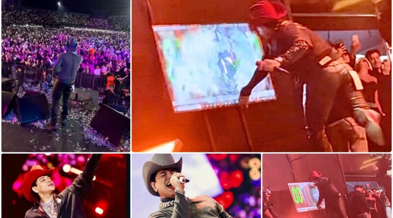 En un concierto el pasado fin de semana en Colombia el intérprete de éxitos como “Ya supérame” luego de notar que su tiempo en el escenario había terminado se dirige a la pantalla aventando una botella y rompiendo la pantalla, para después decir a su público que él no se va hasta que el público lo pida.