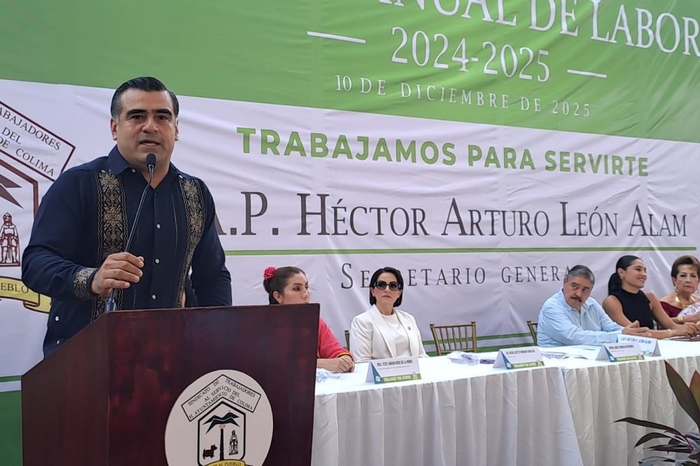 Durante su intervención, el secretario general del sindicato, Héctor Arturo León Alam, señaló que el año estuvo marcado por diversas complicaciones administrativas; sin embargo, destacó que, a pesar del panorama adverso, se cumplió al cien por ciento con los trabajadores, sin adeudos de quincenas ni pagos fraccionados.