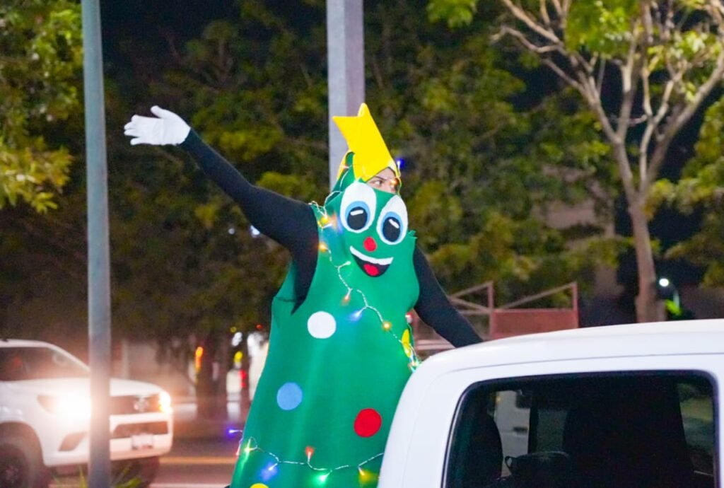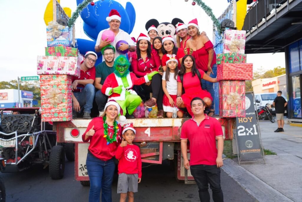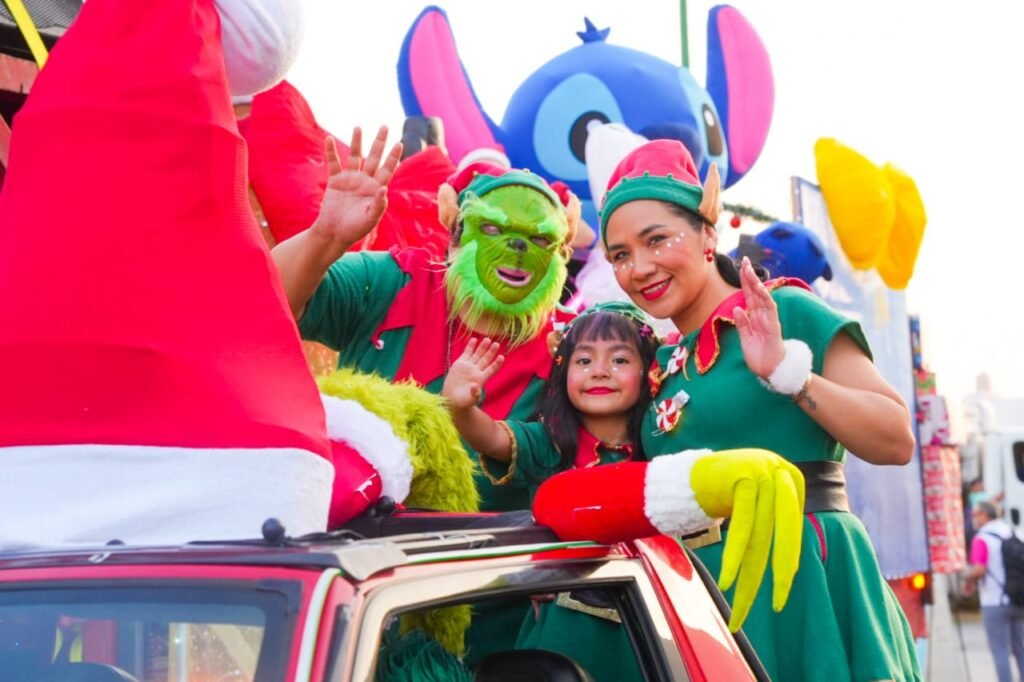 Durante el recorrido, la Caravana Navideña entregó dulces y pelotas a las niñas y niños que disfrutaron de personajes como el Niño Dios, Santa Clos, el Grinch, Rodolfo el Reno, los Duendes y Princesas.