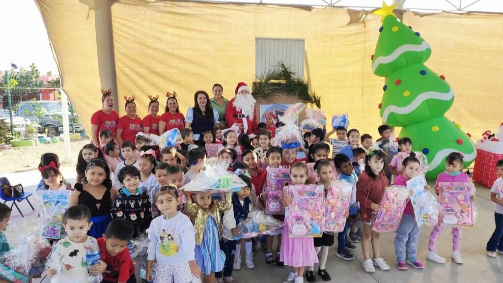 Como una manera de llevar alegría en esta Navidad y felicidad a los pequeños del Jardín de Niños Lic. Isidoro Morales Fernández, la Licda. Kathy del Toro Saucedo, acudió este jueves por la mañana, cargada de regalos para repartirlos entre los pequeñines de este preescolar que la recibieron con mucha alegría, ya que es, la benefactora de este plantel educativo ubicado en la colonia Punta Diamante, en la ciudad de Villa de Álvarez.