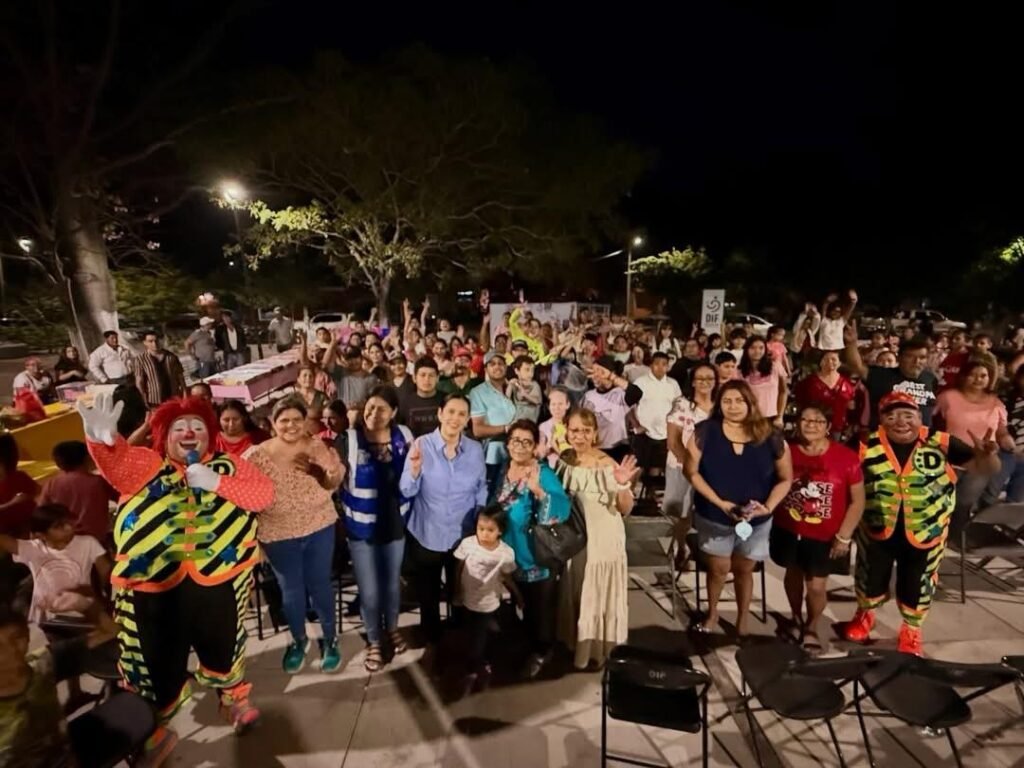 Como parte de las actividades que se realizan en comunidades del municipio, también la presidenta visitó Los Asmoles, donde en el jardín principal se congregaron familias del lugar y de la localidad de Los Ortices, donde además de compartir la rosca de Reyes, niñas y niños, acompañados de sus familias, disfrutaron del show de payasos Los Danys y participaron en una rifa de regalos.
