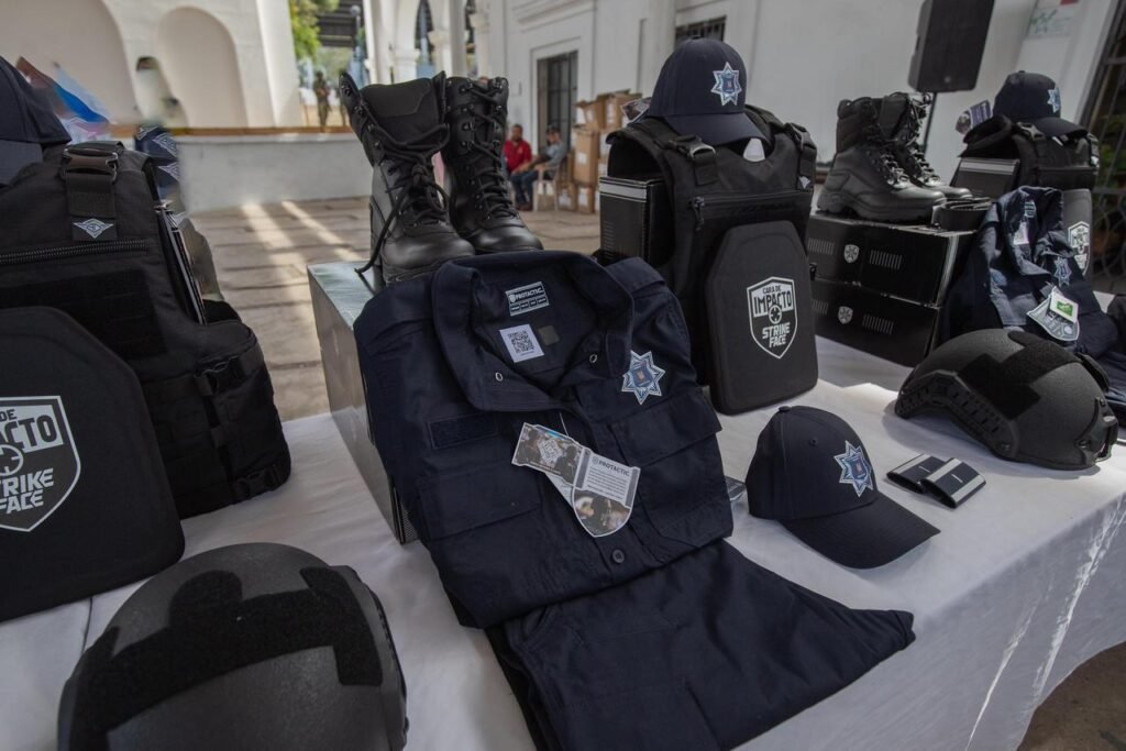 La gobernadora de Colima, Indira Vizcaíno Silva, realizó este viernes la entrega de ocho patrullas en Manzanillo y una más en Minatitlán, así como uniformes, calzado y equipo táctico a policías municipales, para que al momento de hacer su trabajo cuenten con mejores herramientas y puedan cumplir mejor su responsabilidad de prevenir y atender la seguridad en sus comunidades.