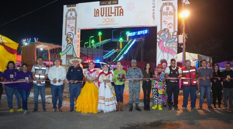 Al corte del listón inaugural de La Villita asistieron, Osiris I, Reina de la Feria de Villa de Álvarez 2026; Jazmín Zaragoza, Princesa de los Festejos; Ricardo Canseco, representante de la Guardia Nacional; Lizet Rodríguez, secretaria del Ayuntamiento; la regidora Alexandra de Jesús Negrete; el regidor Roberto Carlos Aceves; Cristóbal Villaseñor, de Huitzilin MX, y el director de Seguridad Pública de Villa de Álvarez, Inocencio Guzmán de la Peña.