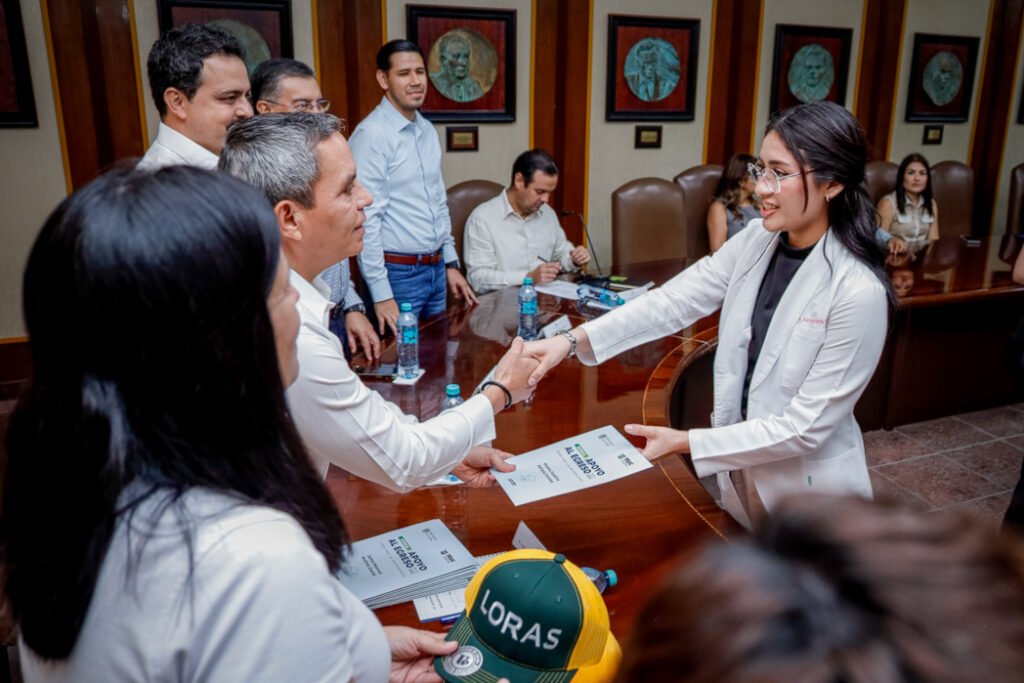 Como parte de las estrategias para impulsar la titulación de todos sus egresados y egresadas, la Universidad de Colima llevó a cabo, este martes 17 de febrero, en el Salón de Juntas de Rectoría, la entrega de la Beca, por el Egreso FEUC-UdeC.