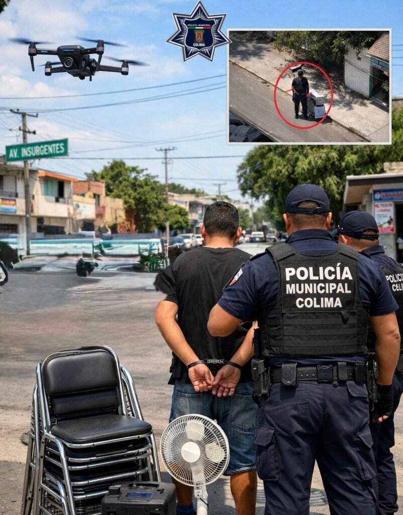 La Policía Municipal de Colima informa que, como resultado de los recorridos preventivos de vigilancia y del monitoreo aéreo estratégico, fue detenida una persona del sexo masculino, como probable responsable del delito de robo, en hechos ocurridos en la colonia Infonavit-Camino Real, sobre la avenida Insurgentes.