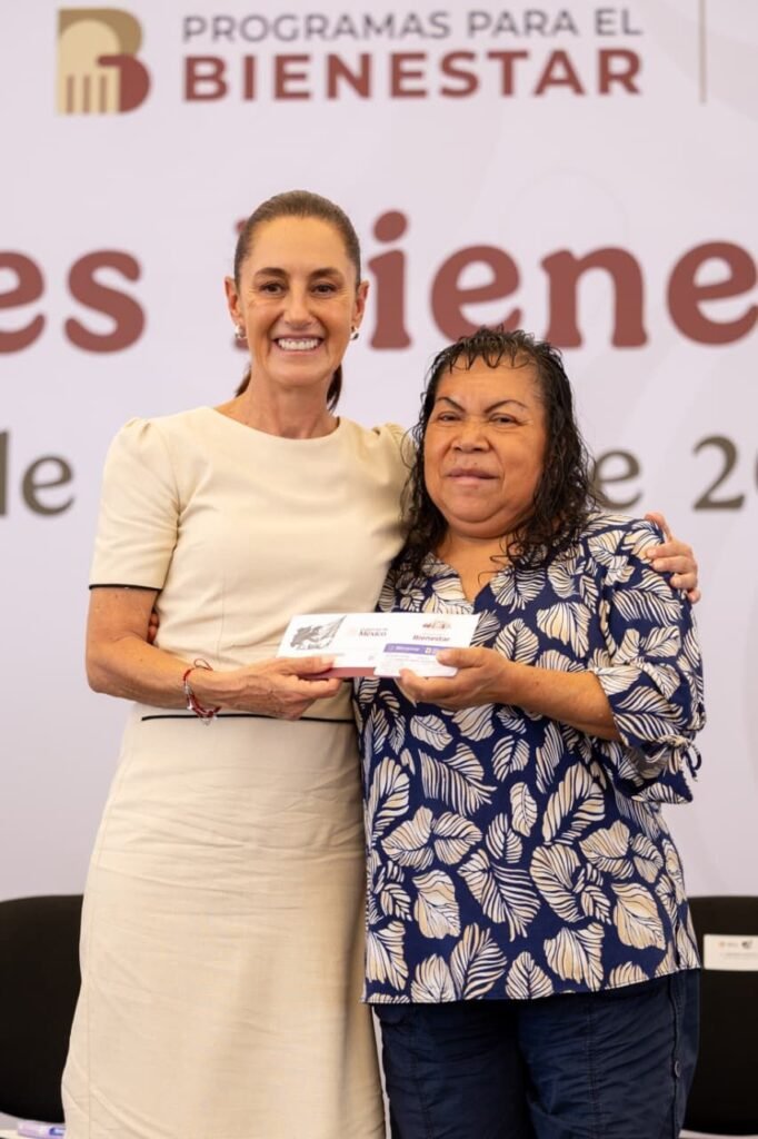 La mandataria Claudia Sheinbaum y la gobernadora Indira Vizcaíno coincidieron en que la Pensión Mujeres Bienestar es equidad y justicia; “porque no sólo es justicia la de los Tribunales, es también justicia para las mujeres mexicanas, porque hubo muchos años de desigualdad”.