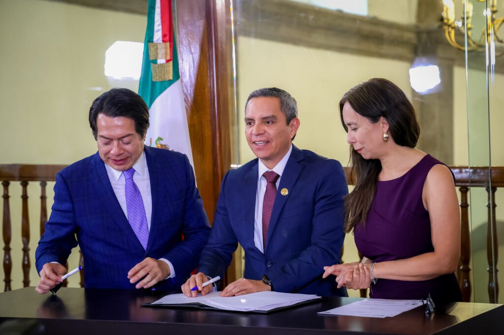 Durante la firma de esta incorporación, a través de un convenio específico como aval académico, el rector estuvo acompañado por Mario Delgado y por Tania Rodríguez Mora, subsecretaria de Educación Media Superior de la SEP.