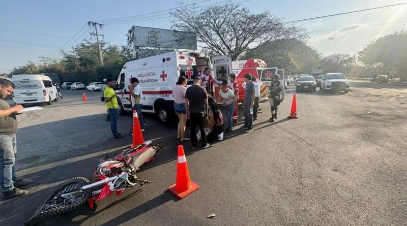 Paramédicos de la Cruz Roja Mexicana Delegación Colima atendieron un hecho de tránsito registrado sobre la carretera Coquimatlán–Colima, a la altura de la entrada al parque industrial.