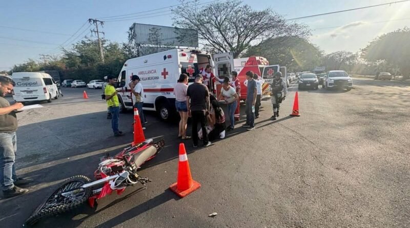 Paramédicos de la Cruz Roja Mexicana Delegación Colima atendieron un hecho de tránsito registrado sobre la carretera Coquimatlán–Colima, a la altura de la entrada al parque industrial.