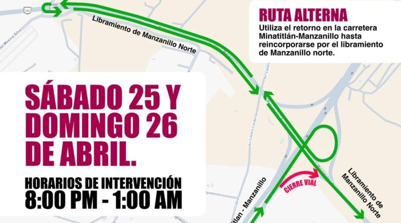 Cabe destacar que las labores no afectarán la circulación en el resto de los carriles, por lo que el flujo vehicular se mantendrá operando en ambos sentidos, utilizando el retorno en la carretera Minatitlán-Manzanillo hasta reincorporarse por el libramiento de Manzanillo Norte.