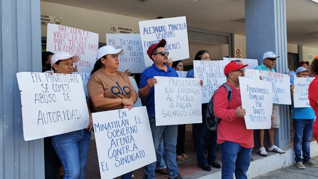 Ante la falta de solución a las diferentes demandas expuestas a la administración municipal encabezada por Cicerón Alejandro Mancilla González. el Sindicato de Trabajadores del Ayuntamiento de Minatitlán se manifestó nuevamente afuera de la presidencia municipal de Minatitlán, Colima.