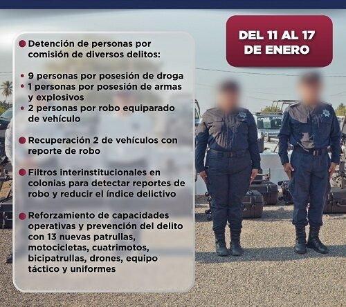 Redacción – Dimensión La Dirección de Seguridad Pública de Manzanillo informó que, como resultado de los patrullajes permanentes realizados durante